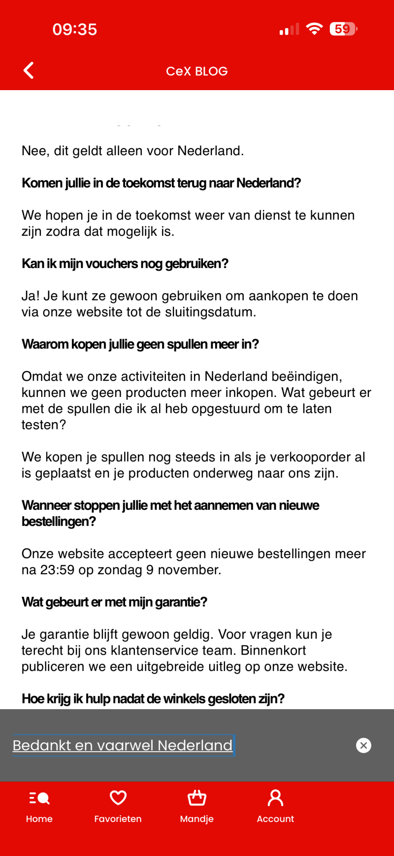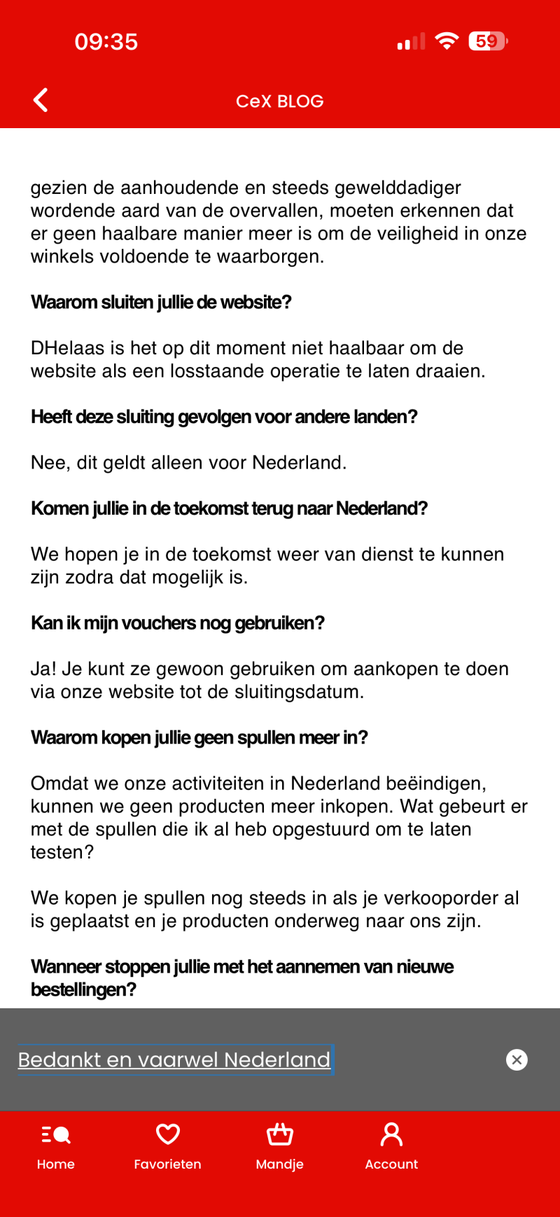 Maar ook nu door Europese wetgeving en Nederlandse maatregelen heeft de winkelketen besloten om ook hun online deuren te sluiten.